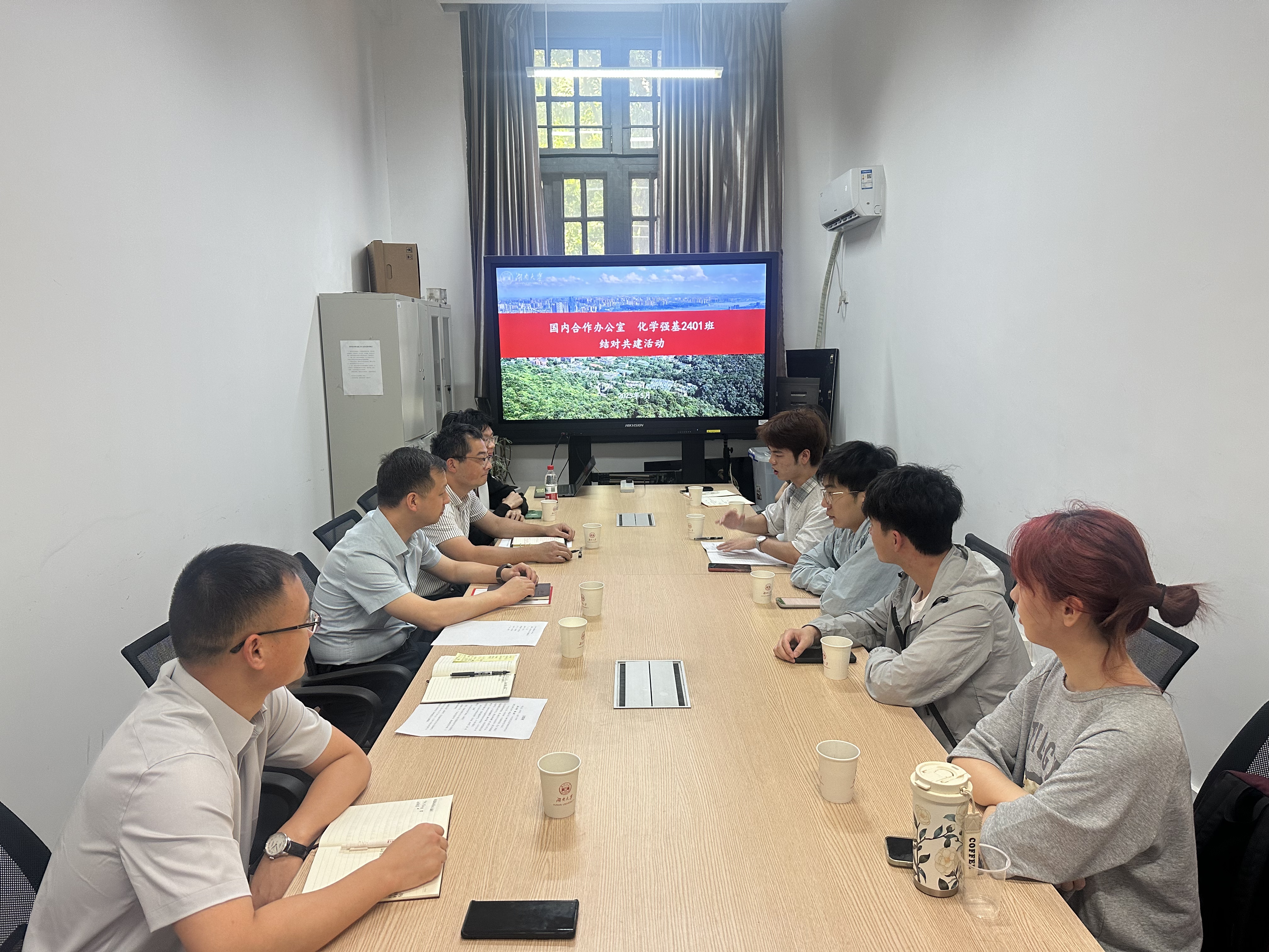 为深入推进学校“一流大学文化建设年”工作,5月29日下午,国内合作办公室党支部与化学化工学院化学(强基计划)2401班在校办121会议室举行结对共建活动。国内合作办公室党支部全体成员、化学强基2401班学生代表参加活动,会议由周果子老师主持。